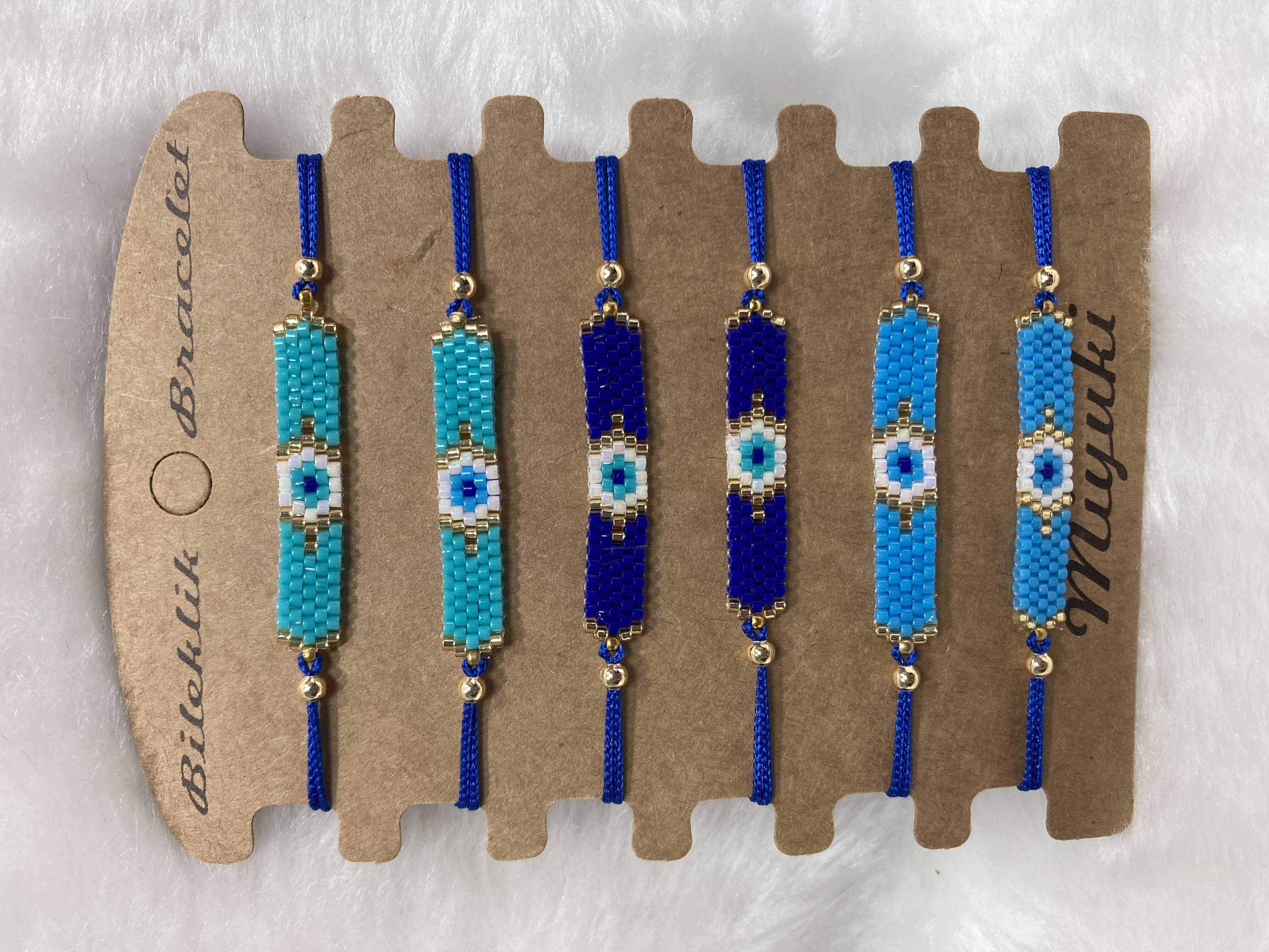 El yapımı ve özel tasarım Nazar Beş Sıra miyuki bilekliklerimiz,  6’lı kraft kart ile toptan satışta sizlerle.