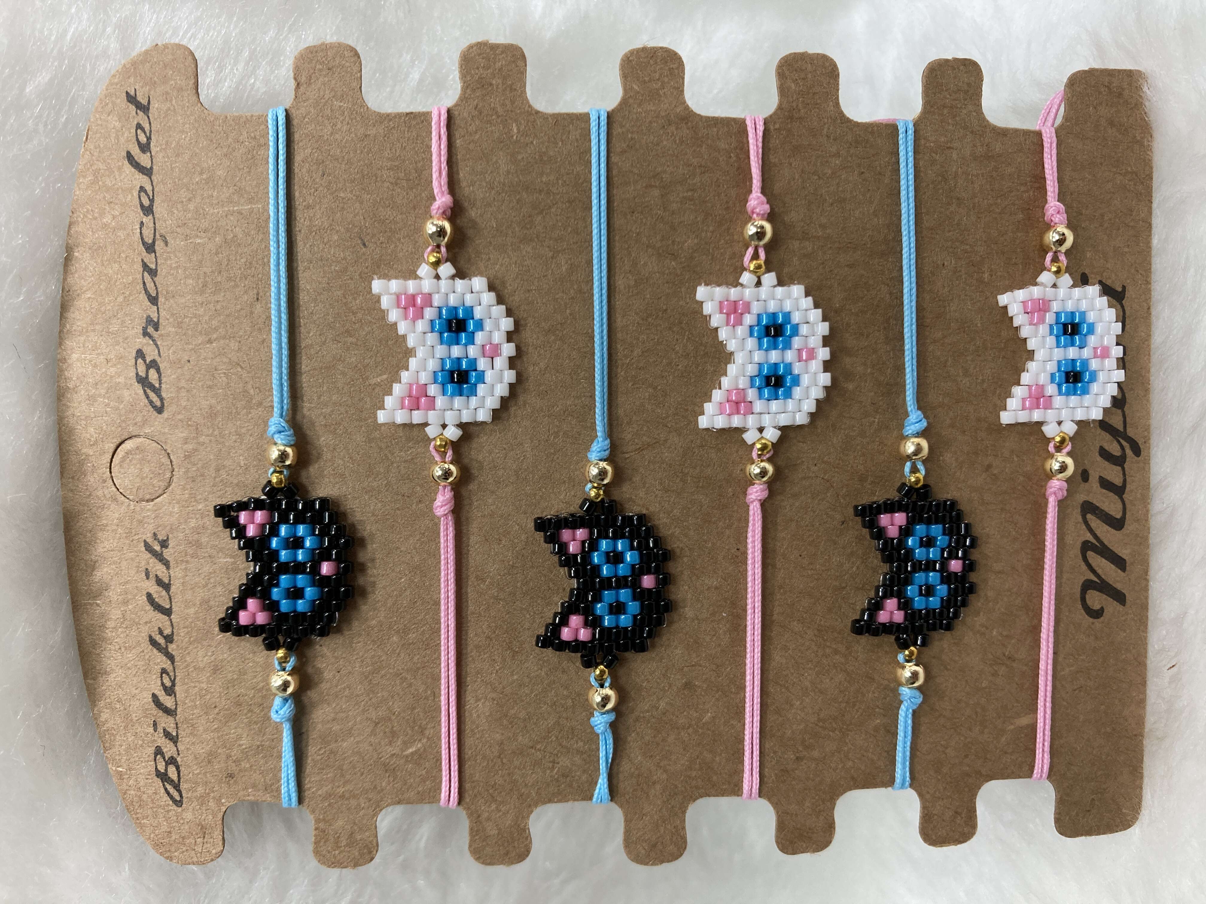 El yapımı ve özel tasarım Kedi miyuki çocuk bilekliklerimiz, 6’lı kraft kart ile toptan satışta sizlerle.